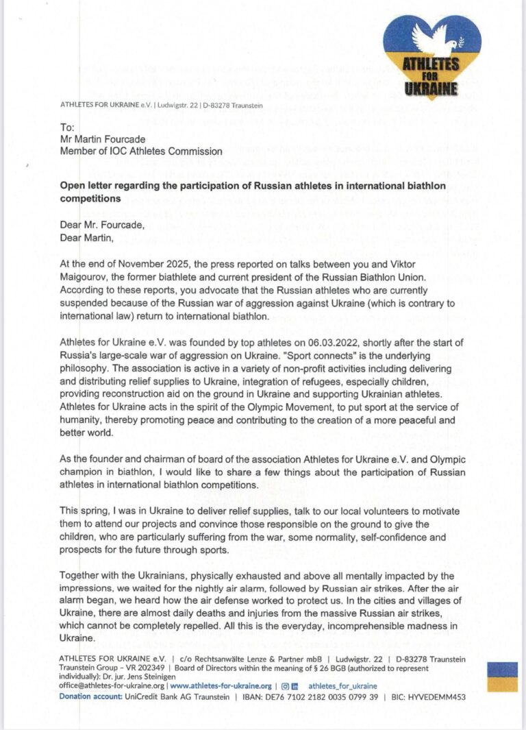 Олімпійський чемпіон з біатлону Єнс Штайніген написав відкритий лист до Мартена Фуркада проти допуску росіян!