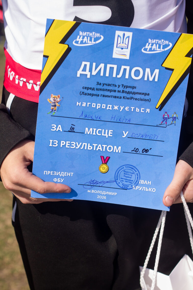 У місті Володимир Волинської області провели дитячий турнір з біатлону з використанням лазерної зброї KiwiPrecision. У турнірі взяли участь 20 дітей від 2012 до 2015 років народження і молодші, які змагалися у кількох вікових категоріях.